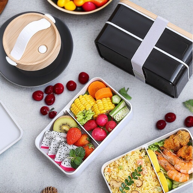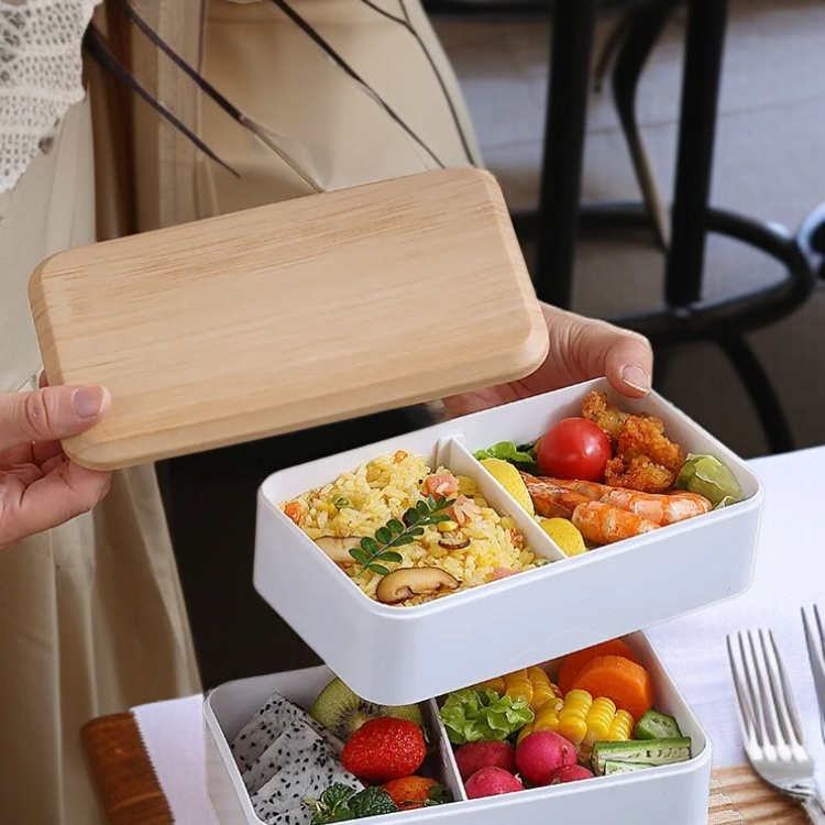 ● 二層構造でおかずとご飯を分けて収納でき、食材の風味をしっかり守ります。